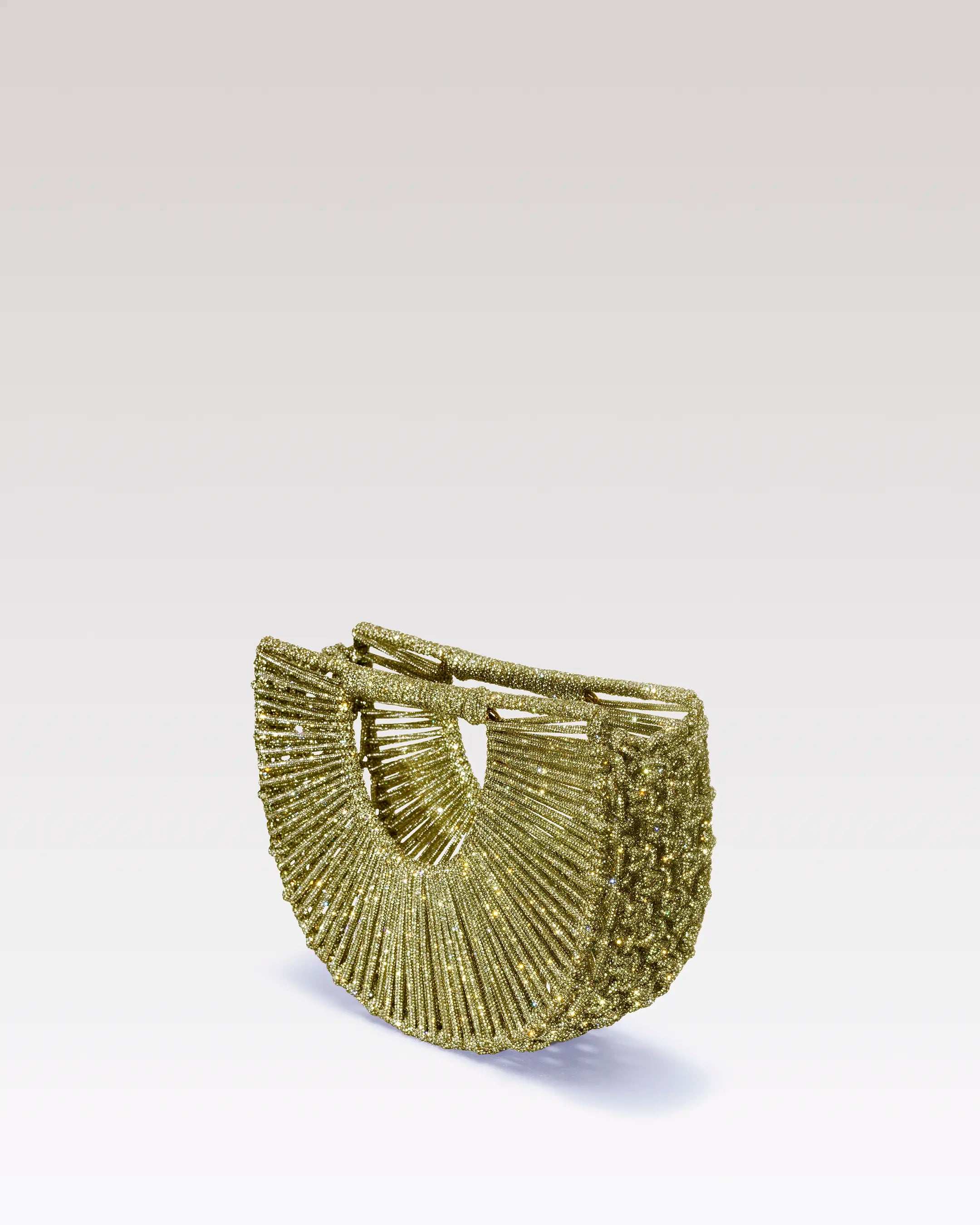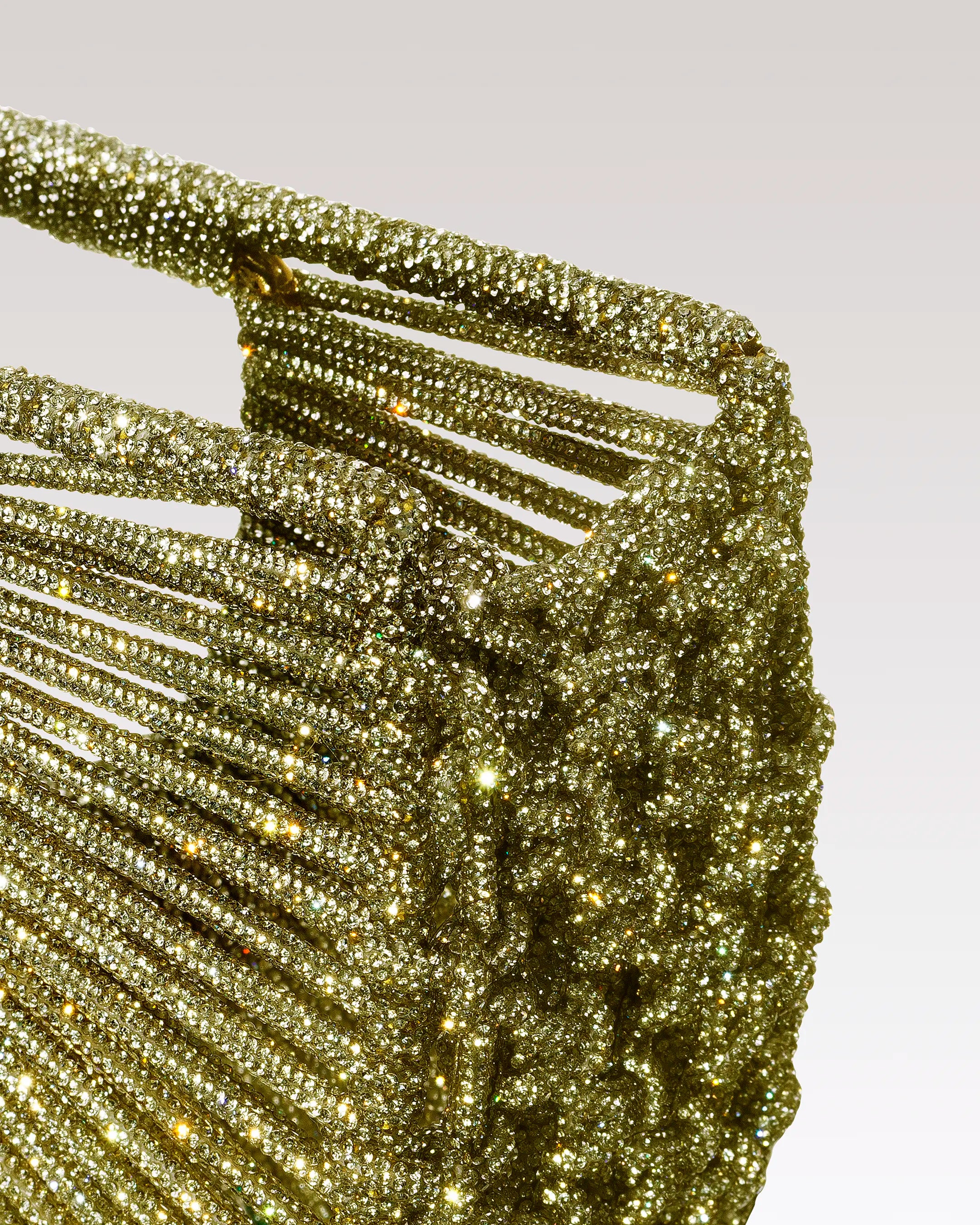 The Demetra jewel bag is this season’s new must-have accessory. Entirely handmade, it blends craftsmanship with ultra-chic design. Its semi-circular shape and sparkling crystals make it perfect to shine at any special occasion.
