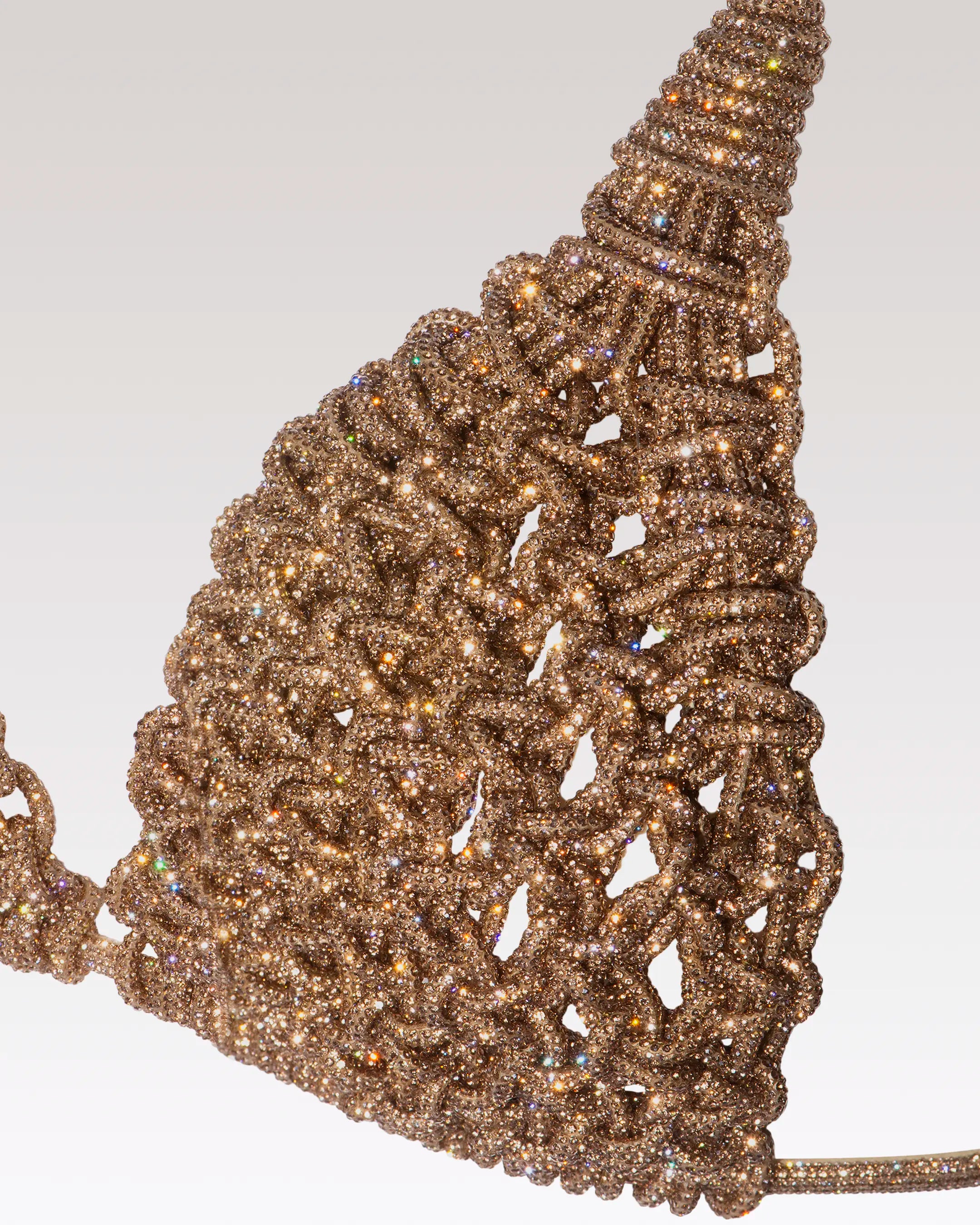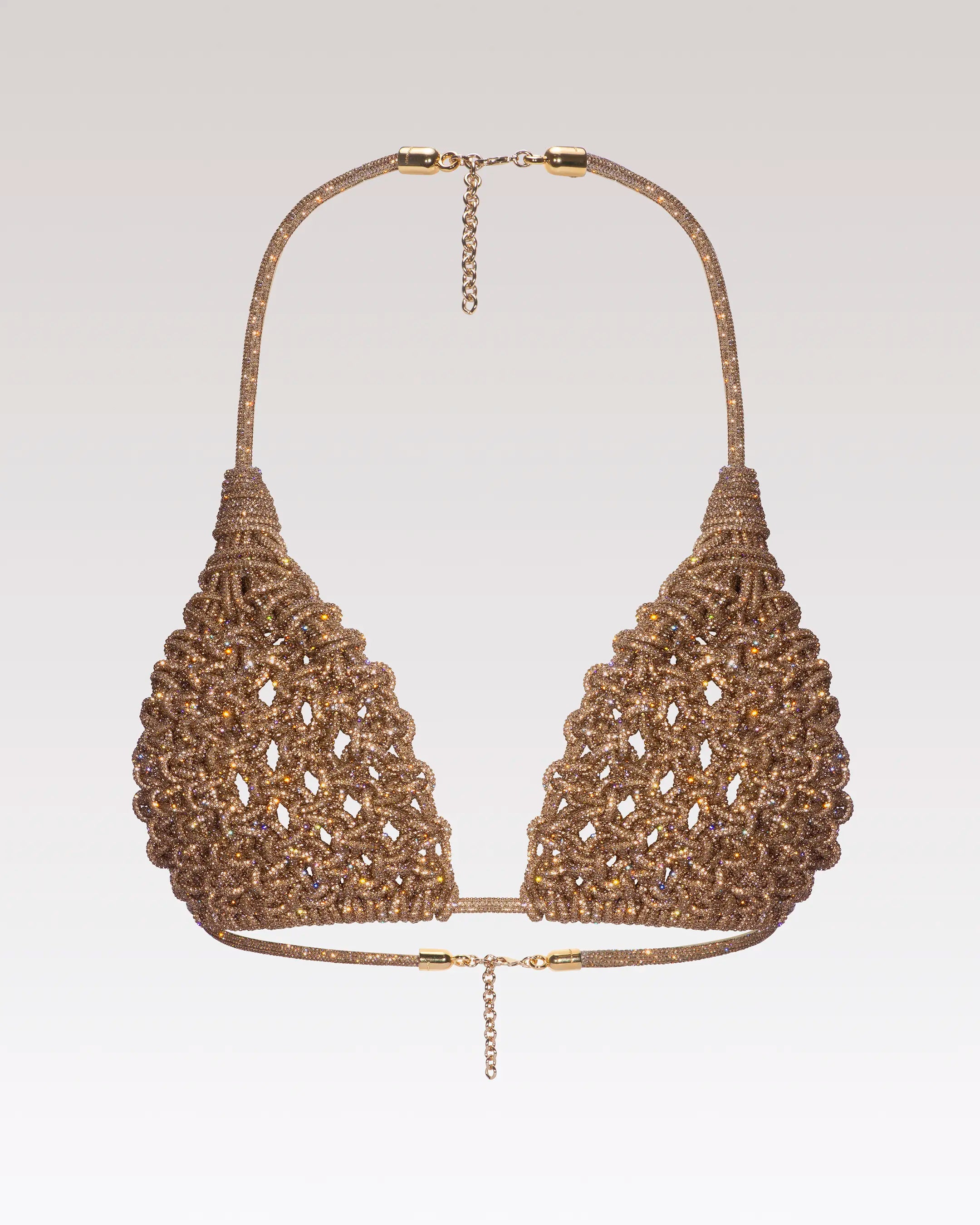 Jewelled bra entirely handcrafted using a refined weaving technique.