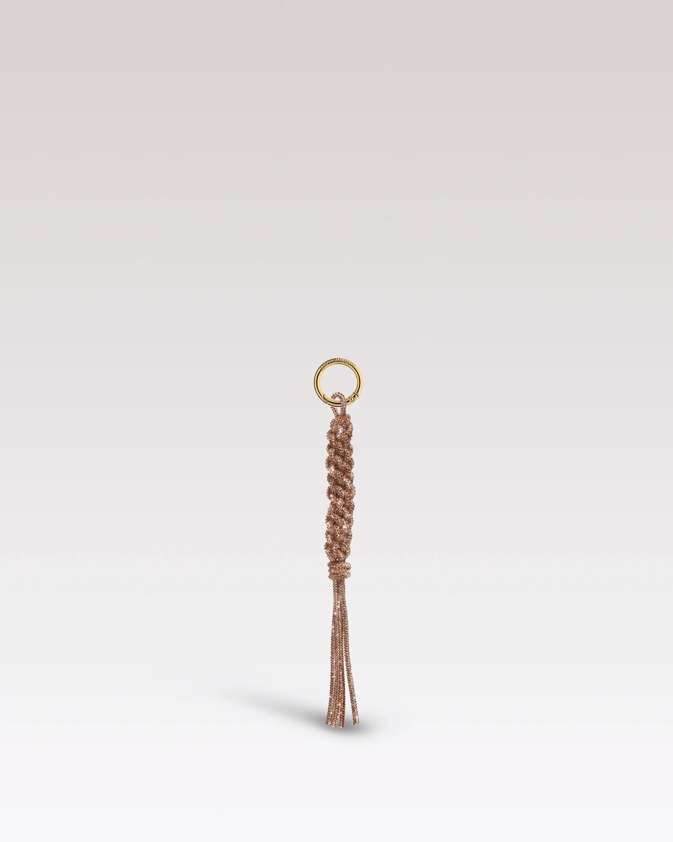 Inspired by the iconic ‘90s, this hand-woven charm combines sparkling crystals and gold-tone metal for a bold, trendy look. A glamorous detail that turns any bag into a must-have style piece.