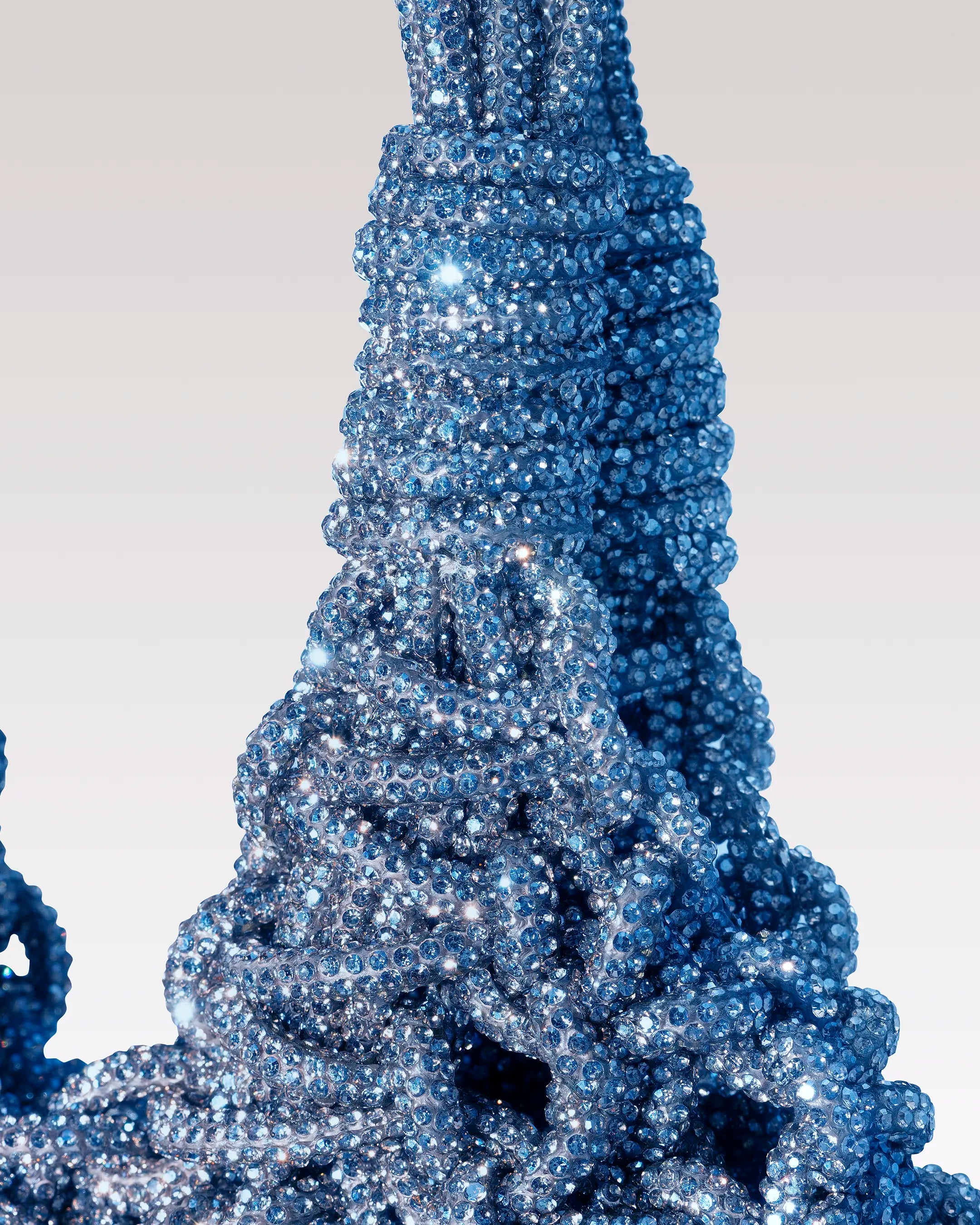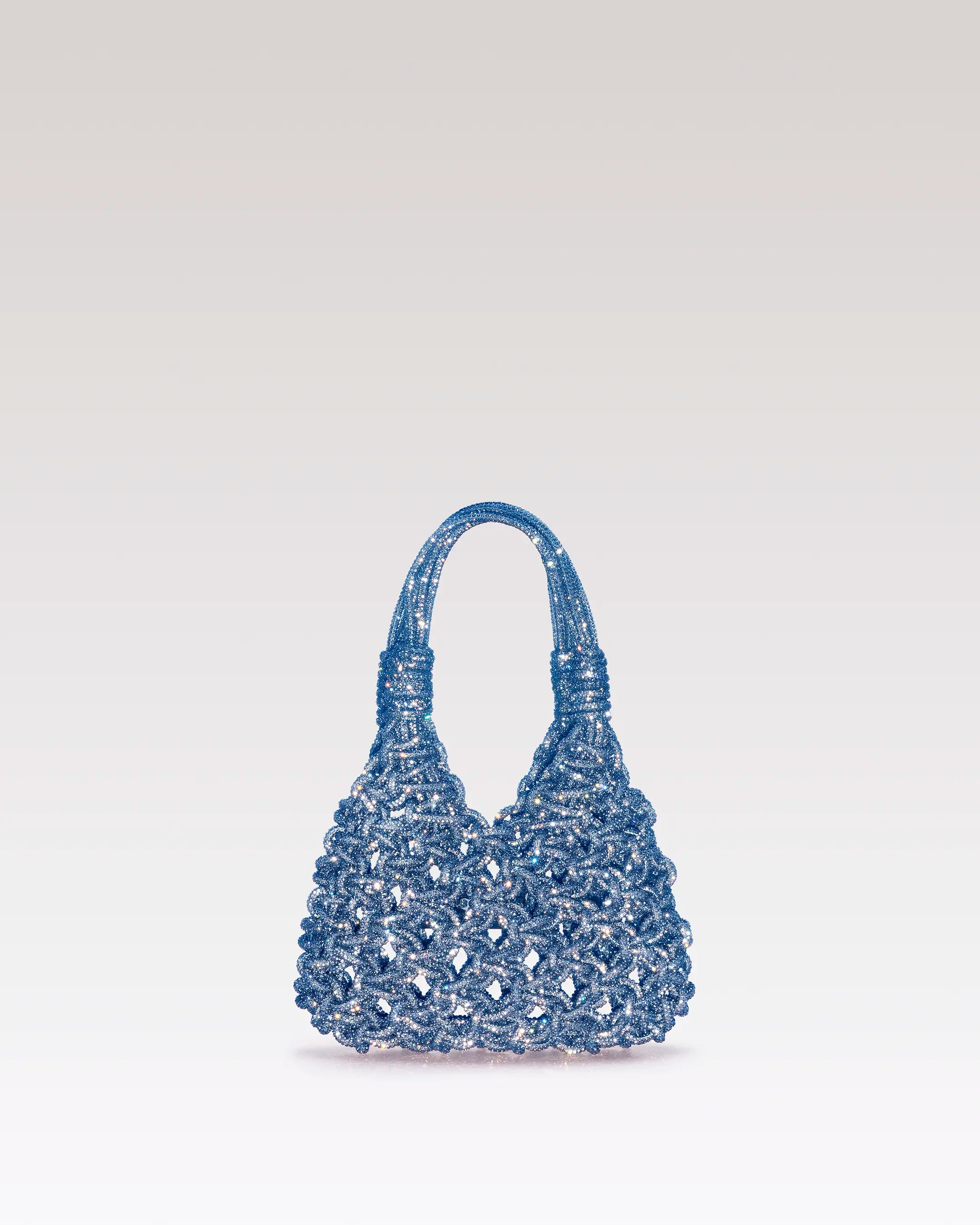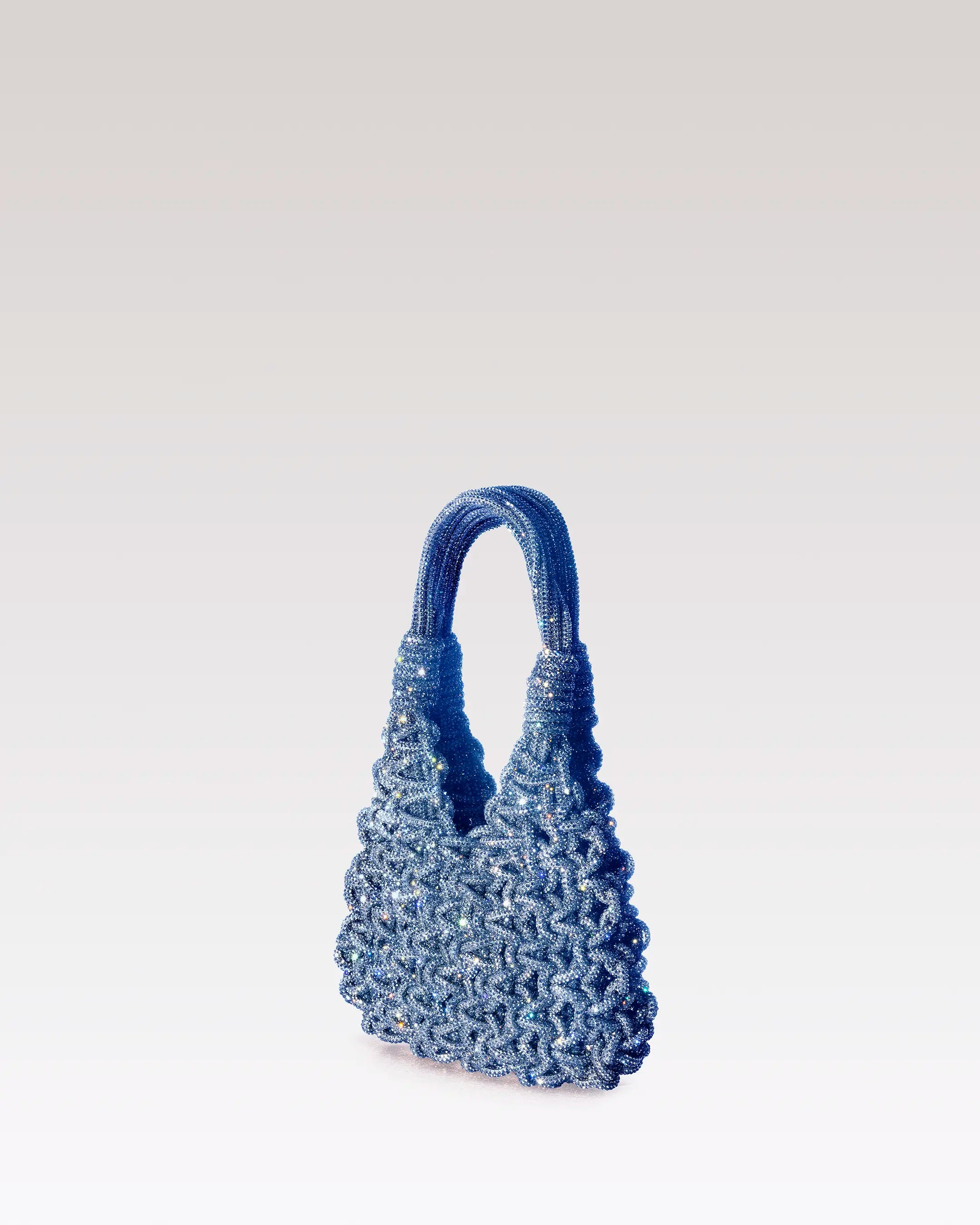 The Vannifique bag is the iconic accessory of the Hibourama collections. Entirely handcrafted using an exquisite weaving technique, this mini version is a modern and elegant piece. The thread, covered in precious crystals, adds a luminous touch to the design.