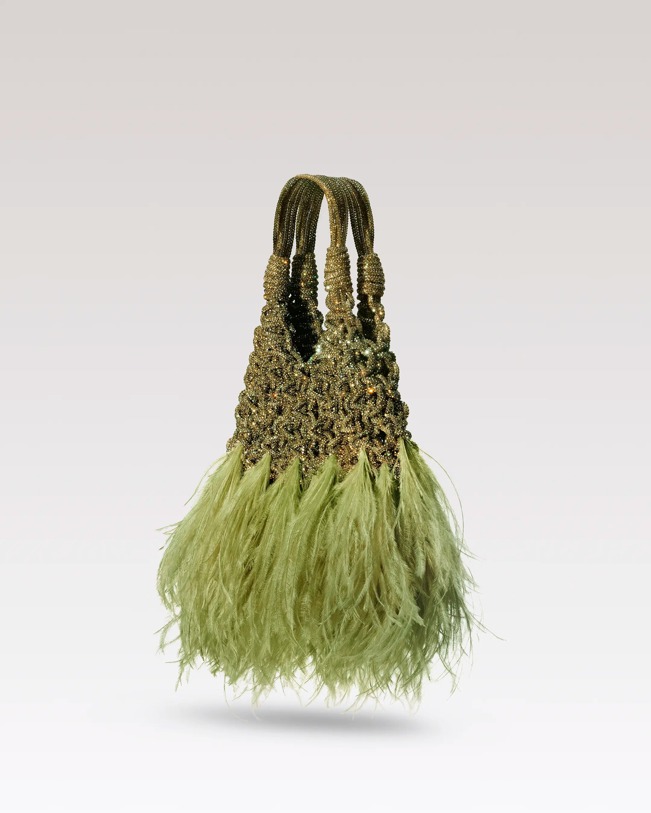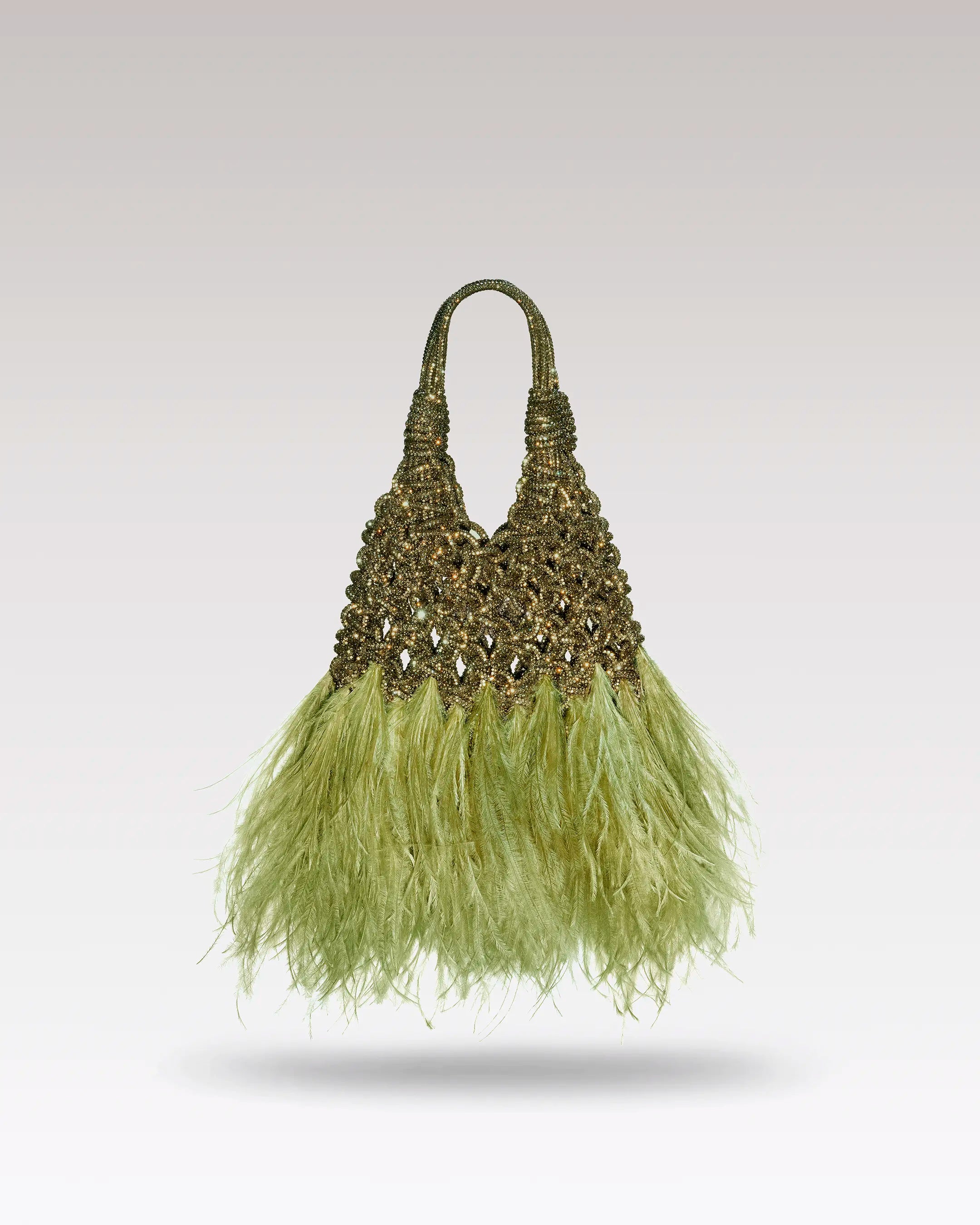 Mini borsa gioiello in cristalli con piume di struzzo ton-sur-ton