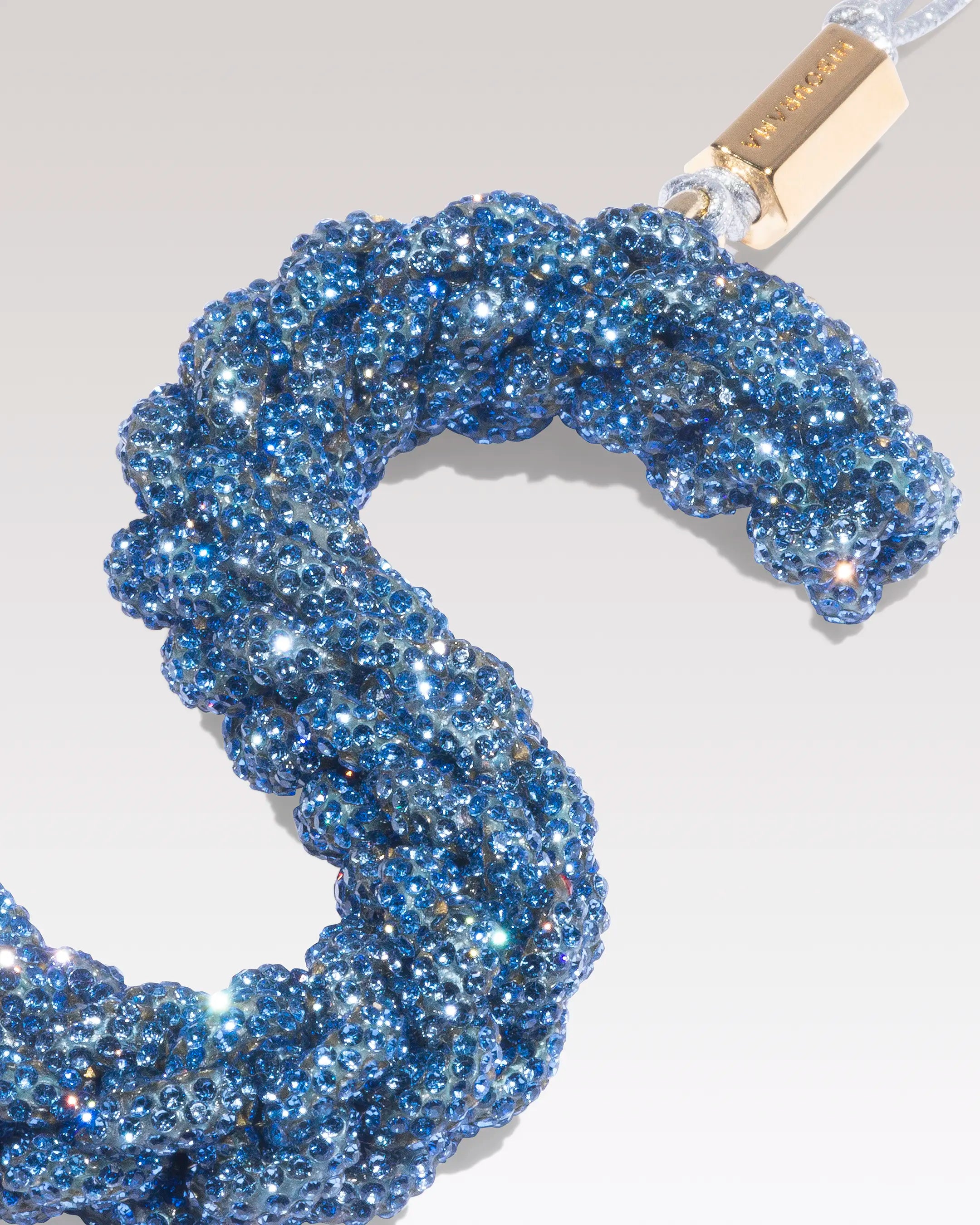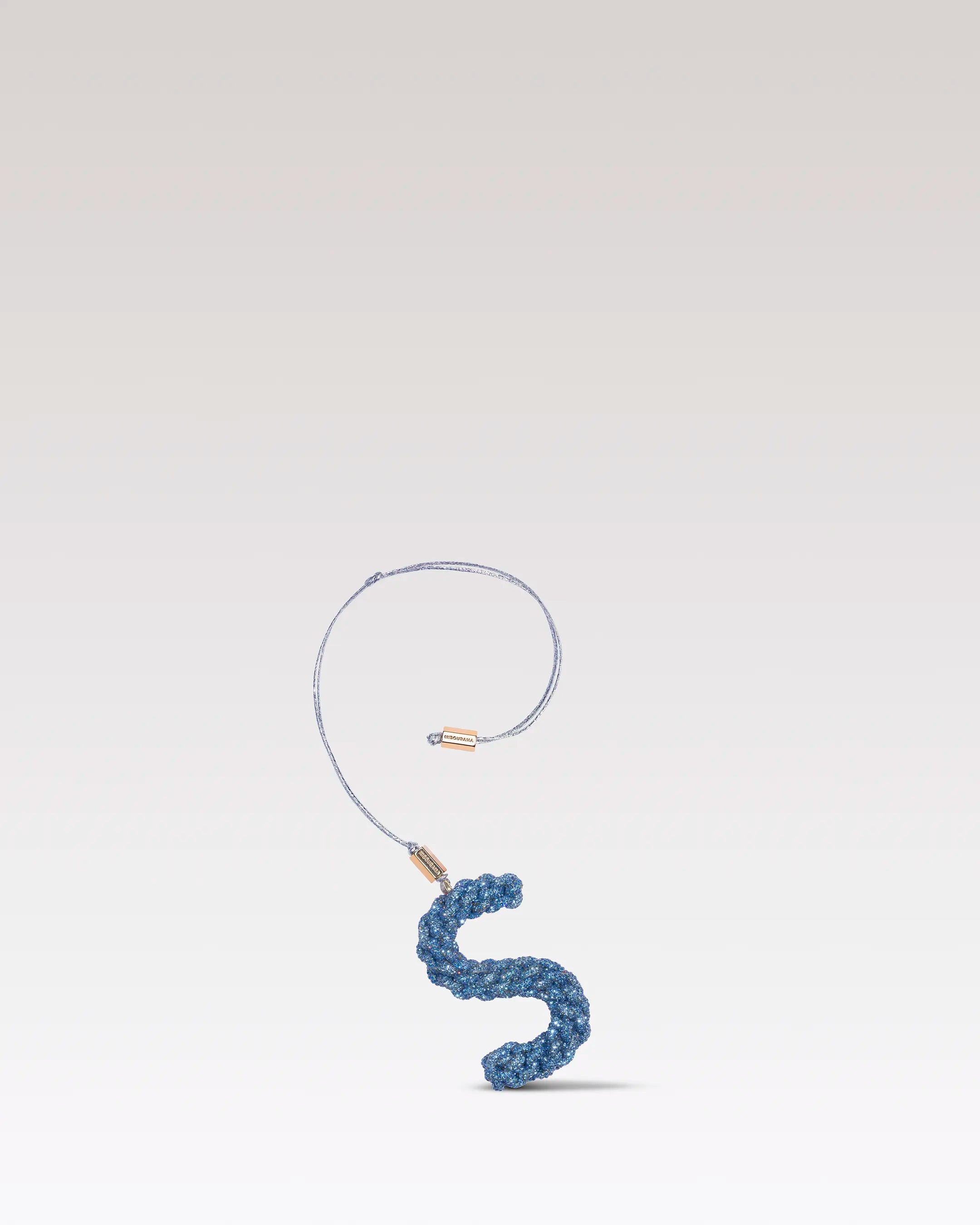 A playful yet chic accessory: the Mini Doll combines intricate weaving, gold-tone beads, and sparkling details. Perfect for adding a touch of style and personality to your bags.