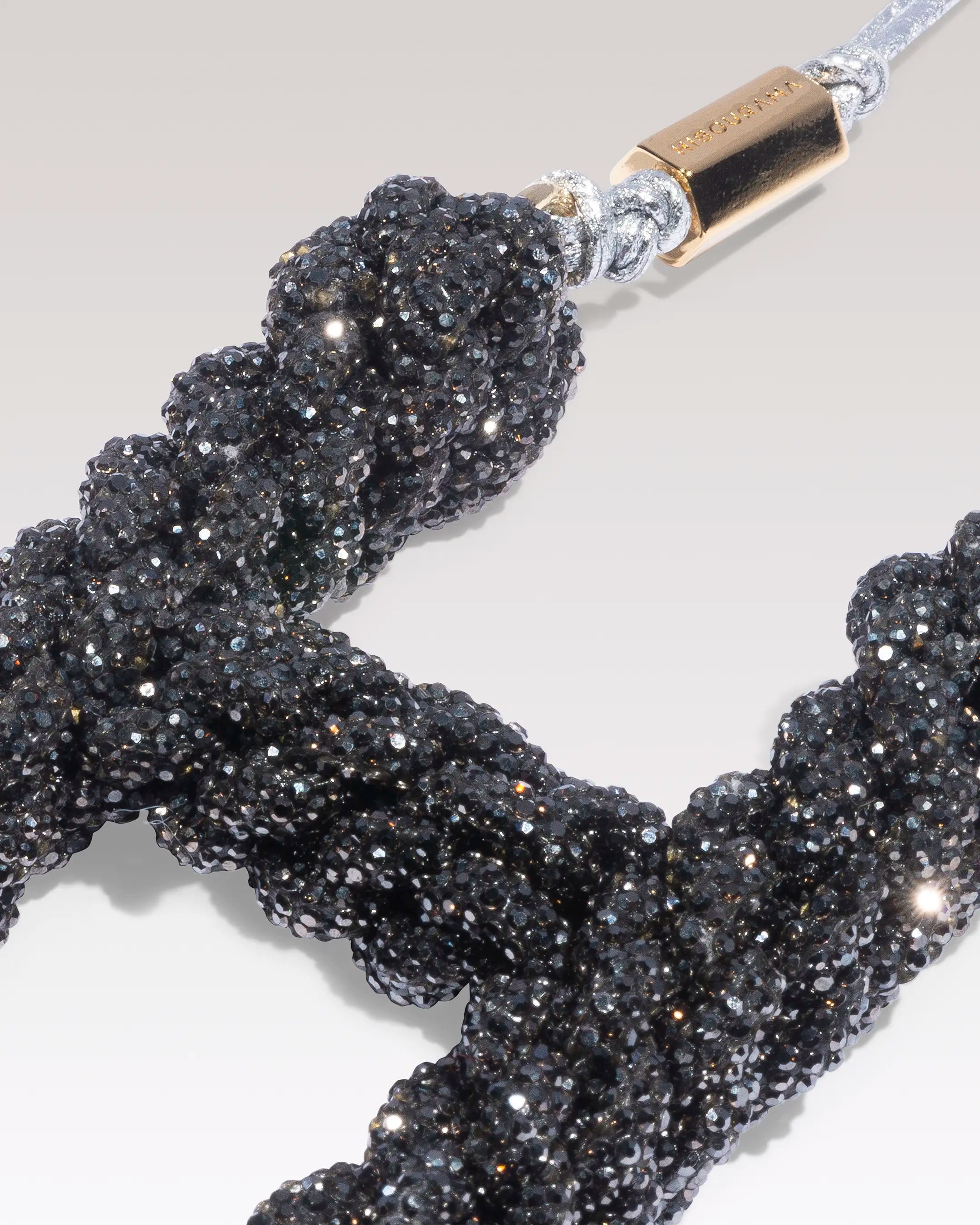 A playful yet chic accessory: the Mini Doll combines intricate weaving, gold-tone beads, and sparkling details. Perfect for adding a touch of style and personality to your bags.