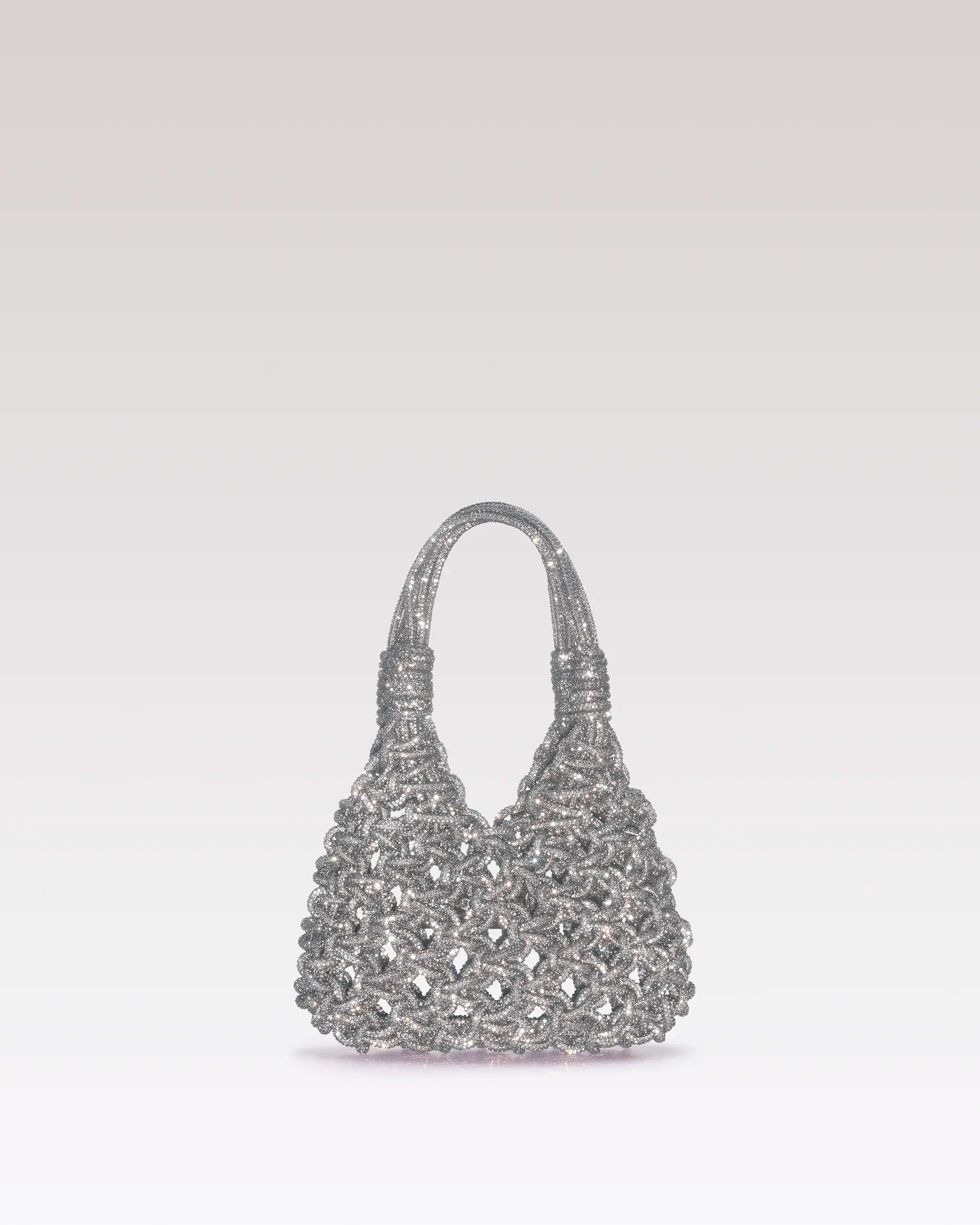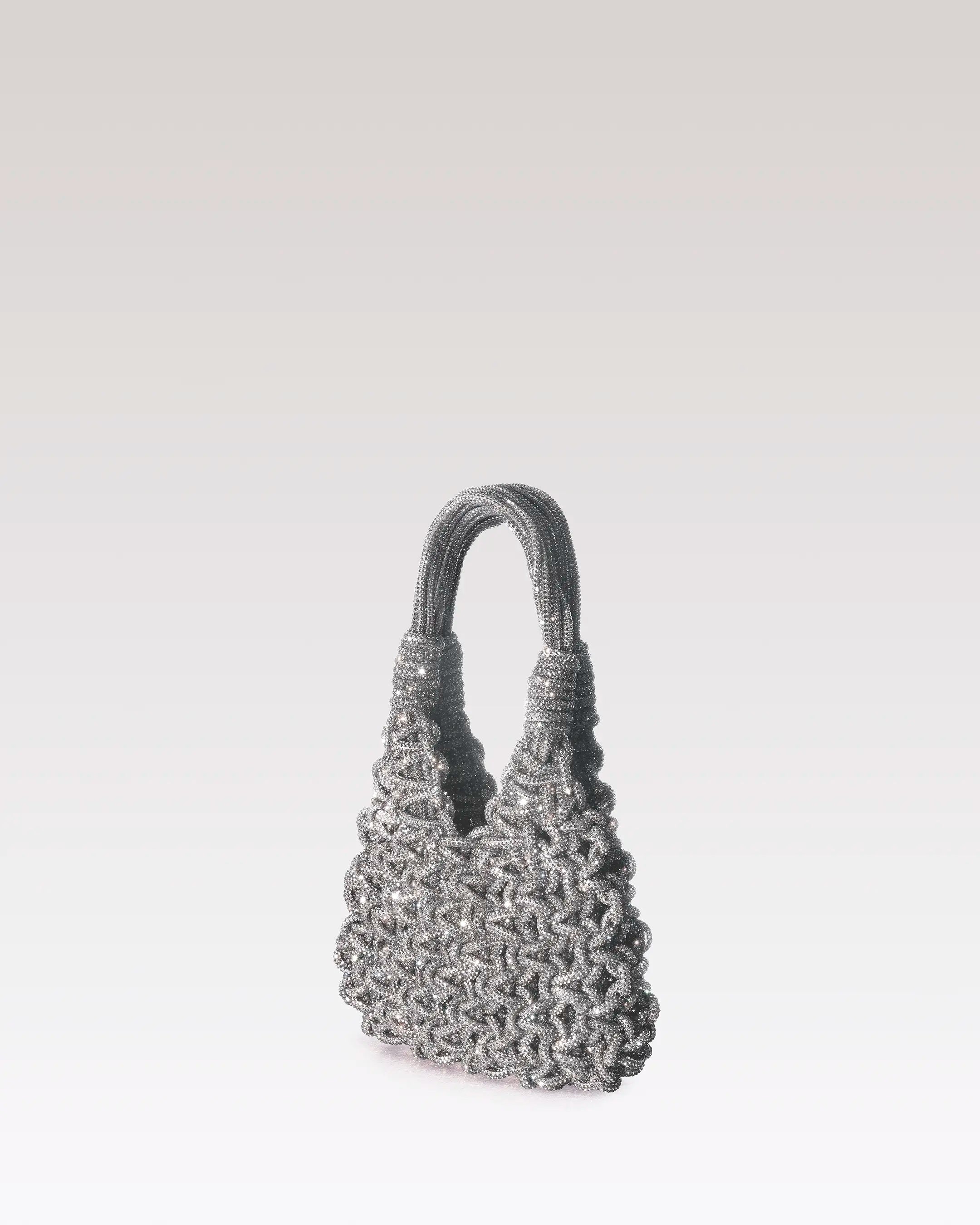 The Vannifique bag is the signature accessory of the Hibourama collections. Entirely handmade according to a fine weaving technique, this bag in its mini version is an accessory of great style and sophistication. The yarn covered with precious crystals illuminates the model.