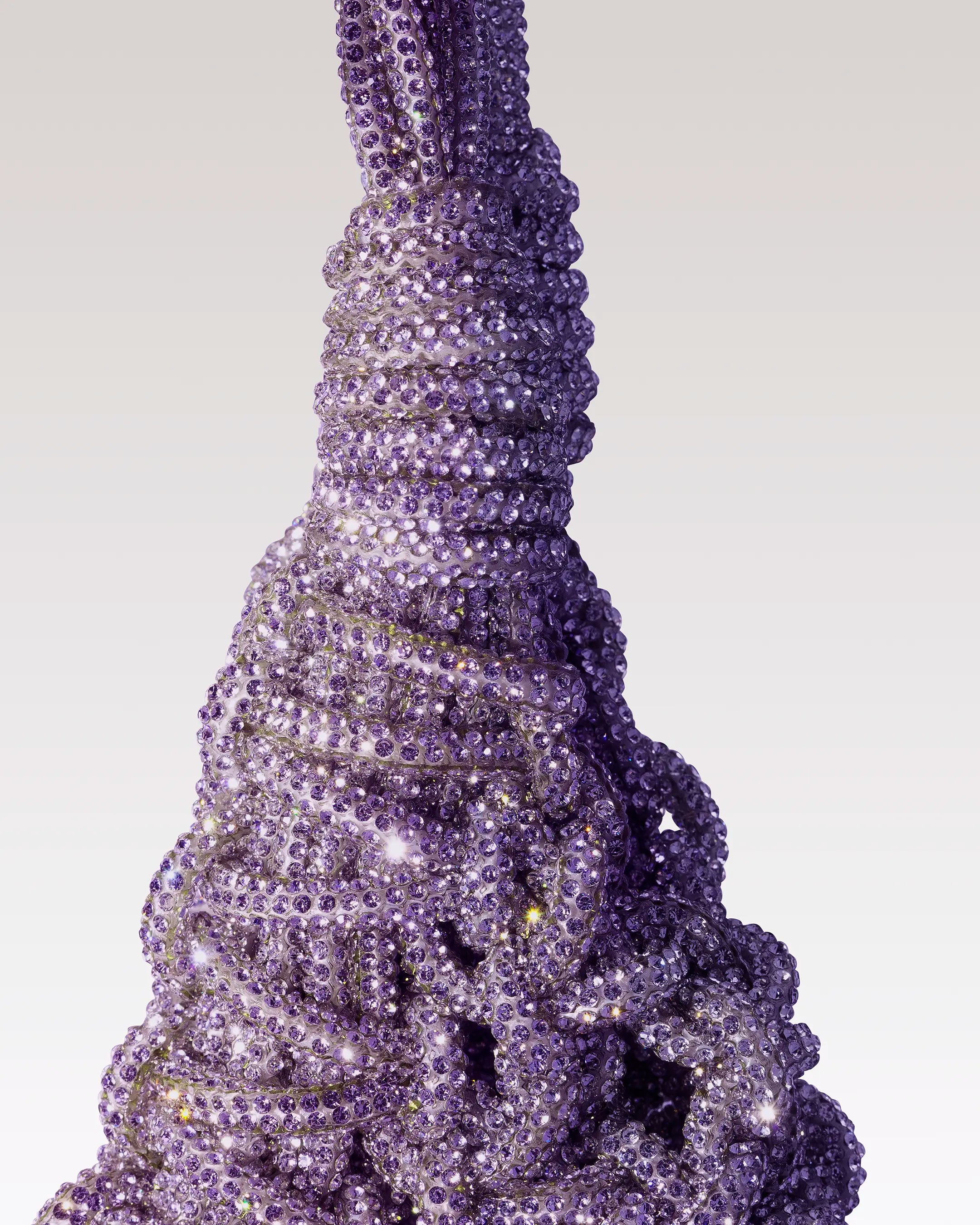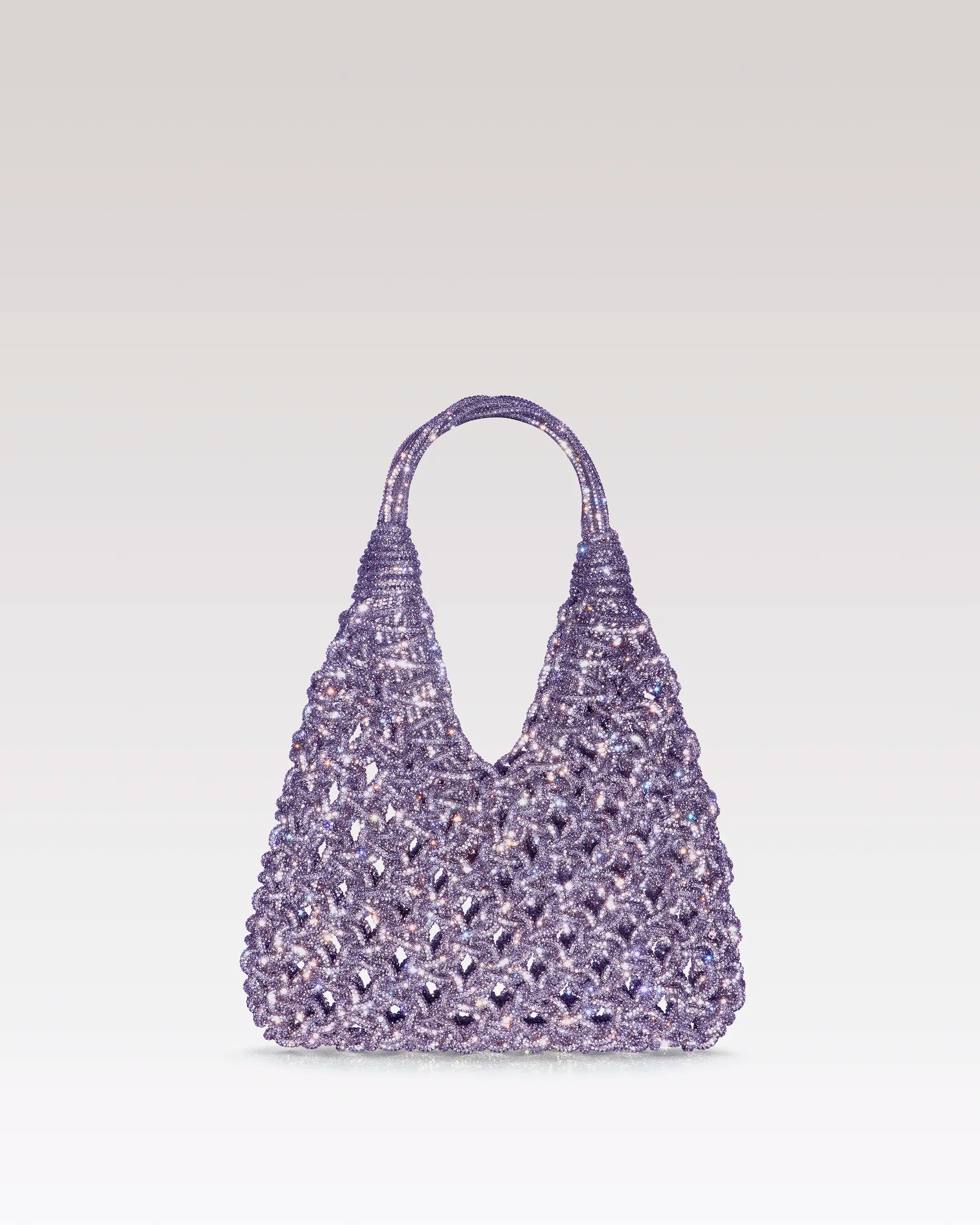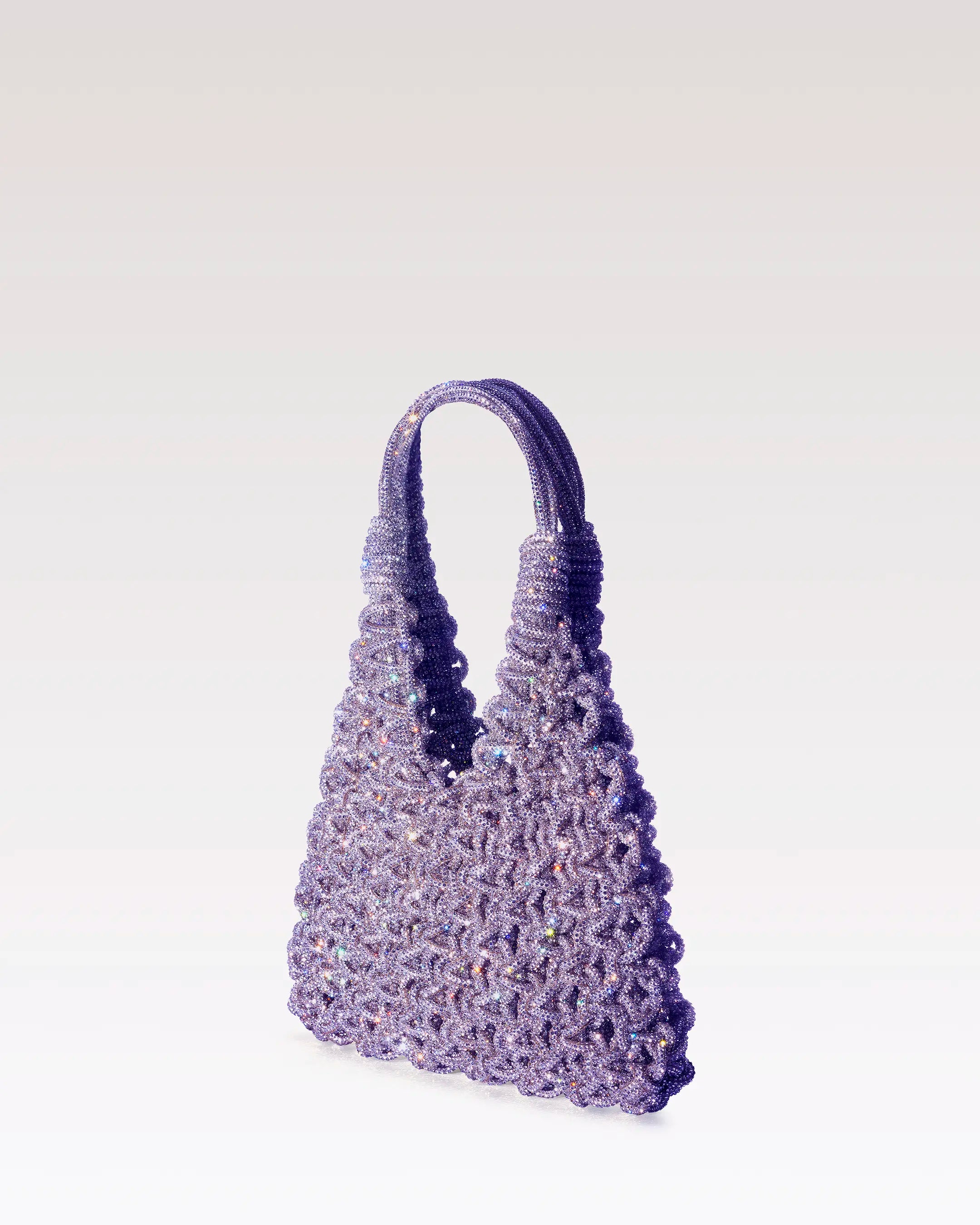 The Vannifique bag is the signature accessory of the Hibourama collections. Entirely handmade according to a fine weaving technique, this bag blends day and evening, becoming a versatile accessory of great style and sophistication. The yarn covered with precious crystals illuminates the model.