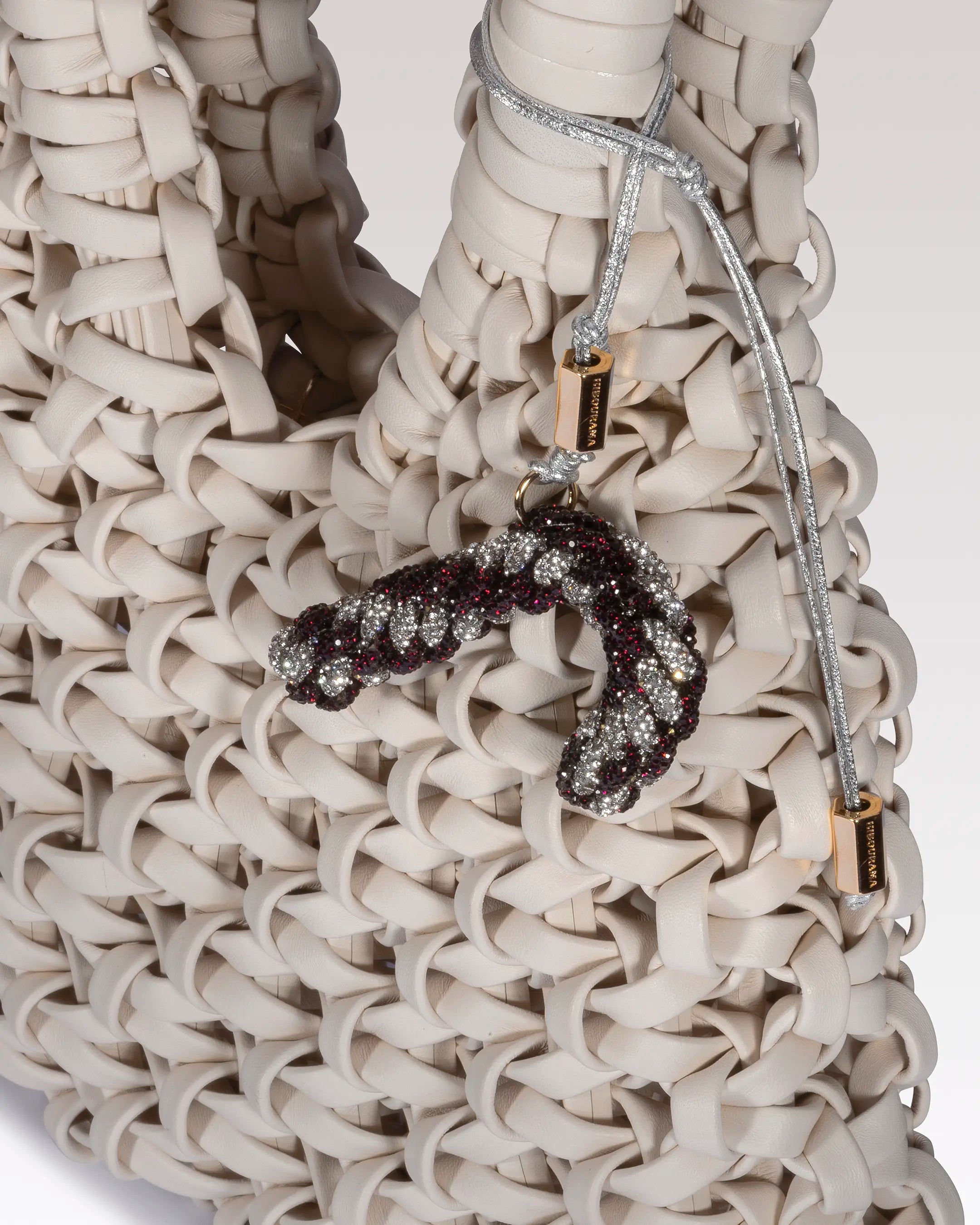 Ispirato al classico bastoncino di zucchero natalizio, il Candy Charm unisce gioco e luminosità. Realizzato a mano con cristalli rossi e argentati intrecciati, aggiunge un tocco allegro e scintillante a borse e portachiavi. Un piccolo simbolo delle feste, da regalare o collezionare.